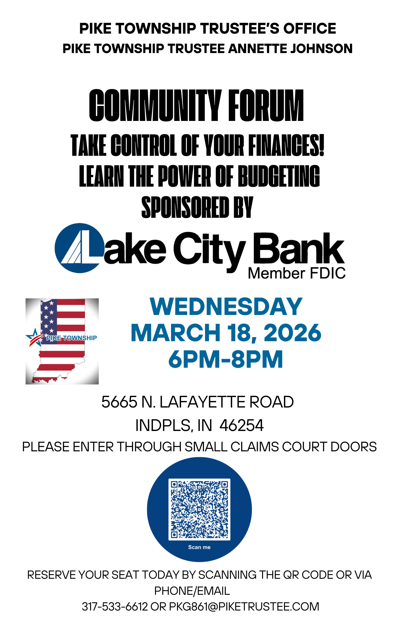 We’ll be joined by: Trustee Annette Johnson of Pike Township and Trustee Jeb Bardon of Wayne Township.